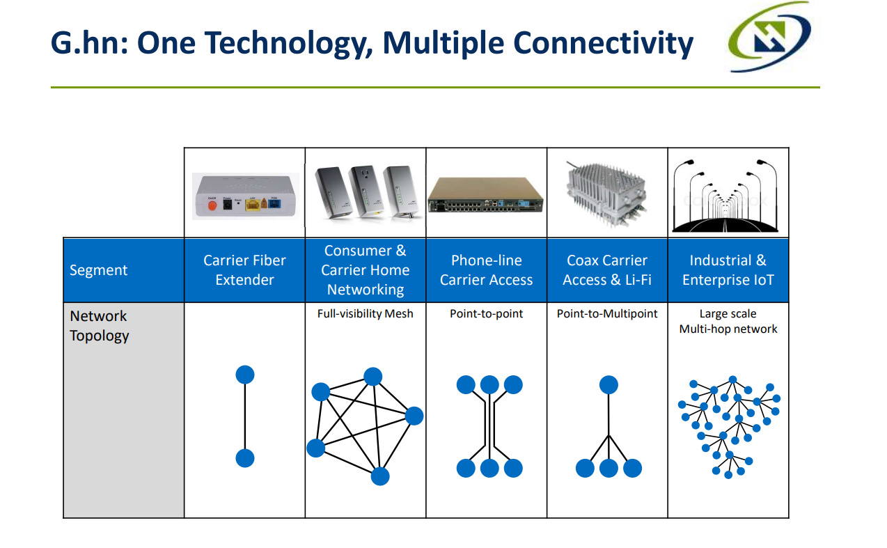 “The multiple connectivities here is for you as a reference. So, any topology can be addressed with the G.hn as a backbone, and then you build on top of that with a different software”.