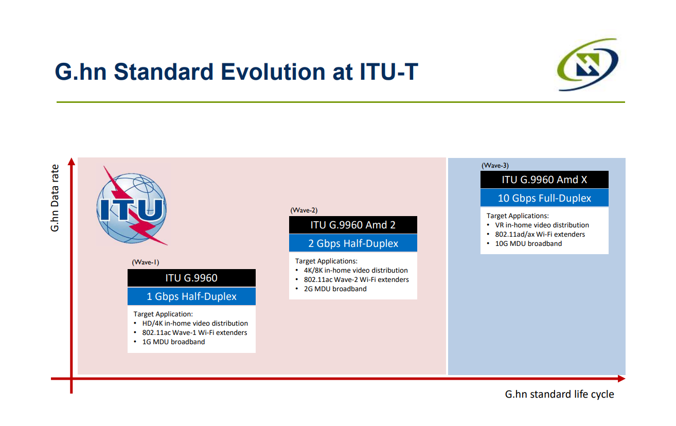 Lead the work within the ITU-T to continuously expand G.hn, through a sustained effort to improve and extend this advanced home networking technology for any in-home wiring (coaxial cable, phone line, powerline and plastic optical fiber).