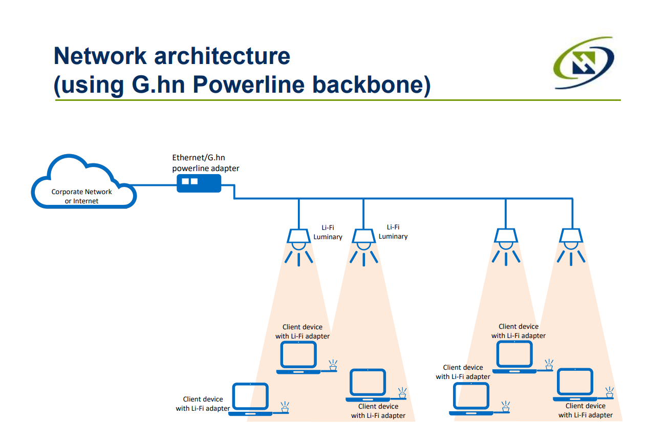 “This is the network architecture with something for you to have as a reference. So, you move around with your laptop with your devices and instead of getting from one access point to another on the Wi-Fi you can use the LiFi luminaries, and again, you'll have plenty of speakers today that can go into details on how that works and the client device on that patient. The roaming itself”.