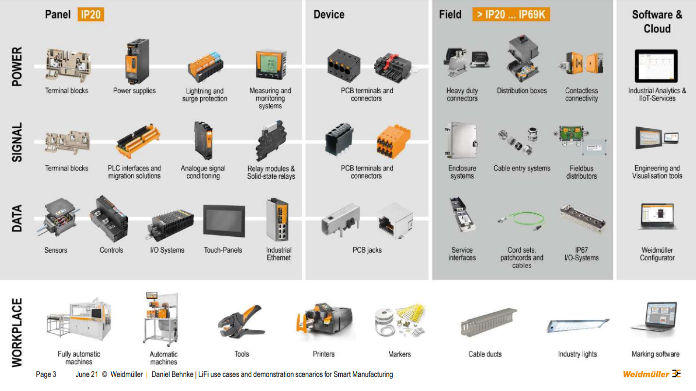 In another article recap series, we will talk about the presentation on LiFi Use Cases And Demonstration Scenarios For Smart Manufacturing delivered by Daniel Behnke from Weidmüller Deutschland. Before this, we will talk about Weidmüller Deutschland.